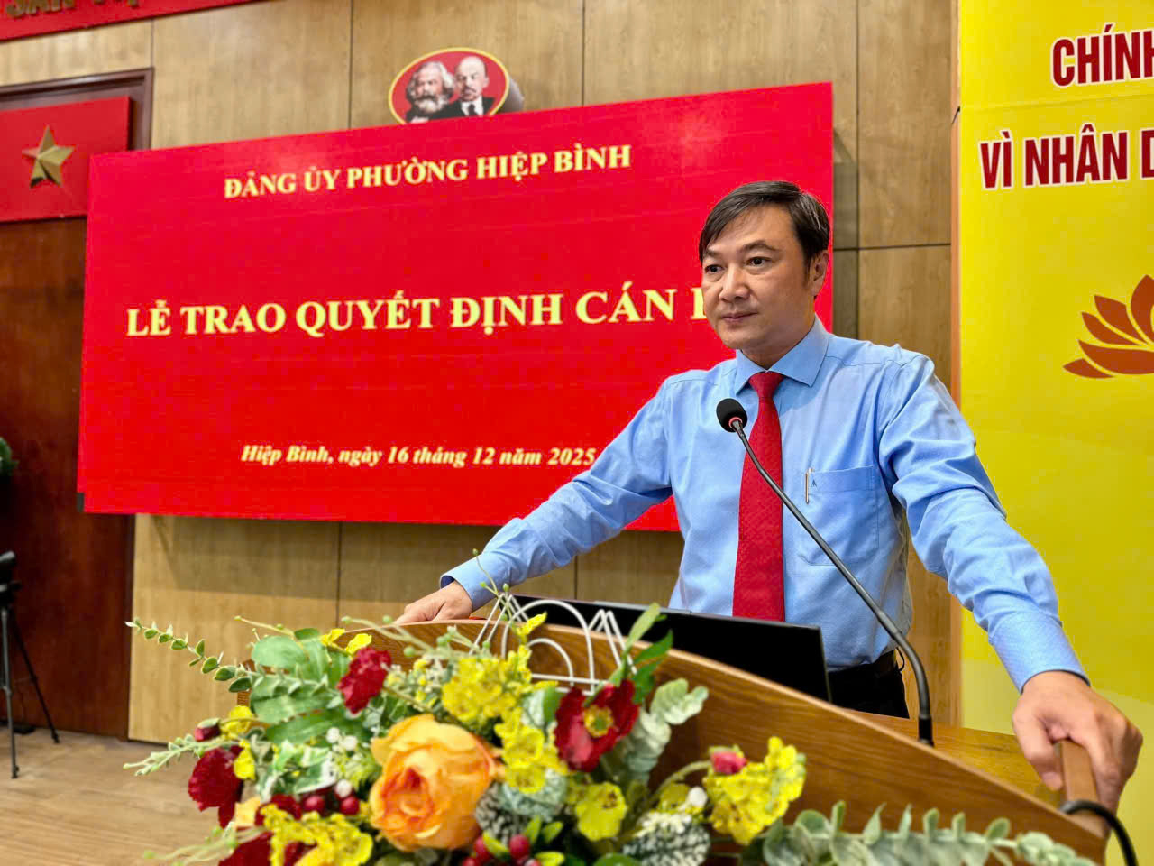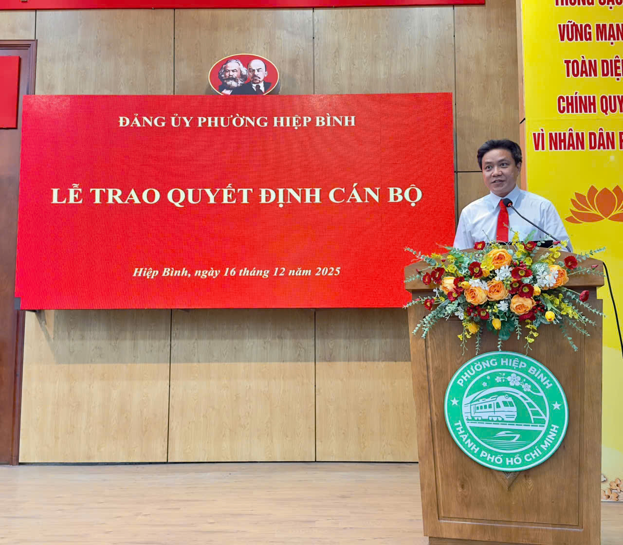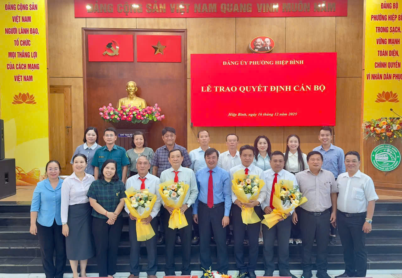 Sáng ngày 16/12/2025, Đảng uỷ phường Hiệp Bình long trọng tổ chức Lễ Công bố và trao quyết định luân chuyển, điều động và bổ nhiệm cán bộ lãnh đạo quản lý nhằm kiện toàn bộ máy tổ chức của địa phương nhiệm kỳ 2025 - 2030.
