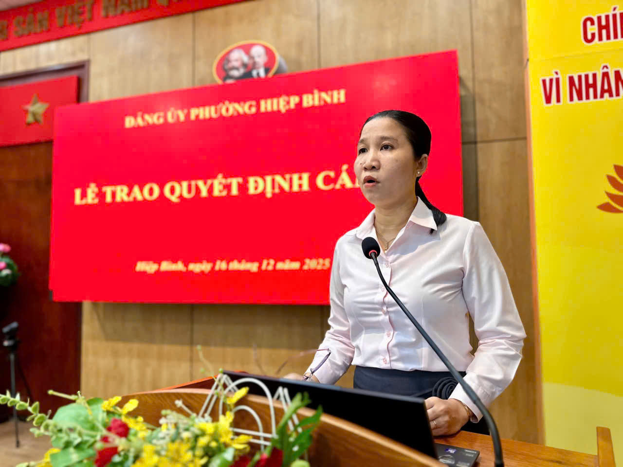 PHƯỜNG HIỆP BÌNH TỔ CHỨC LỄ CÔNG BỐ VÀ TRAO QUYẾT ĐỊNH LUÂN CHUYỂN, ĐIỀU ĐỘNG VÀ BỔ NHIỆM CÁN BỘ LÃNH ĐẠO QUẢN LÝ