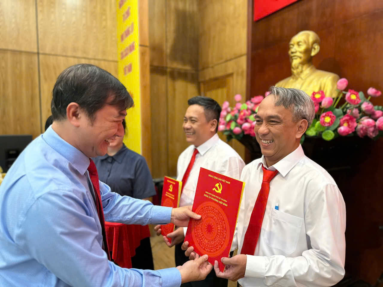 Tại buổi lễ, đại diện Ban tổ chức đã công bố các Quyết định của Ban Thường vụ Đảng uỷ phường về việc luân chuyển, điều động và bổ nhiệm nhân sự của các cơ quan tham mưu, giúp việc đảng uỷ, cơ quan Uỷ ban MTTQ Việt Nam phường, cụ thể: Đồng chí Hồ Minh Chiến, Đảng uỷ viên, Chánh Văn phòng Đảng uỷ phường giữ chức vụ Phó Chủ nhiệm Uỷ ban Kiểm tra Đảng uỷ phường nhiệm kỳ 2025 - 2030; Đồng chí Lê Đình Thắng, Đảng uỷ viên, Phó Chủ tịch Uỷ ban MTTQ Việt Nam phường, Chủ tịch Công đoàn phường giữ chức vụ Chánh Văn phòng Đảng uỷ phường, thời hạn giữ chức vụ là 05 năm; Đồng chí Giảng Phan Hồng Phúc - Phó Ban Kinh tế - Ngân sách HĐND phường giữ chức vụ Phó Chủ nhiệm Uỷ ban Kiểm tra Đảng uỷ nhiệm kỳ 2025 - 2030; Đồng chí Vũ Quốc Bảo, Công chức Cơ quan Uỷ Ban Kiểm tra Đảng uỷ nhận nhiệm vụ tại Uỷ ban Mặt trận Tổ quốc Việt Nam phường.