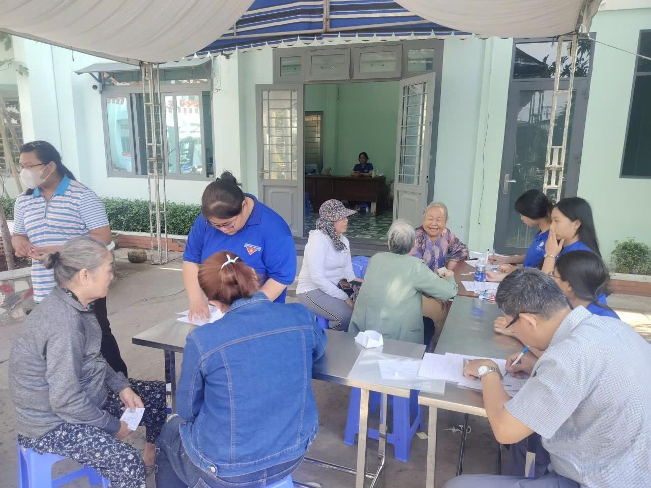 Đoàn viên, thanh niên phường Hiệp Bình hỗ trợ người cao tuổi kê khai thông tin